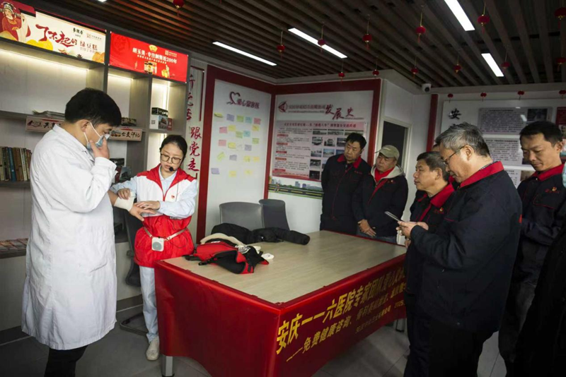 活动特别邀请安庆一一六医院专家团队坐诊,为出租车司机、公交驾驶员、环卫工人等户外劳动者提供血压测量、健康问诊等基础检查服务。针对户外作业常见的职业健康问题,专家们一对一给出科学防护建议与专业指导。急救技能培训环节更是人气高涨,医生借助模型生动演示海姆立克急救法、心肺复苏等实用技能,手把手指导现场群众实操练习,让大家在互动体验中掌握应急自救本领,筑牢生命安全防线。
