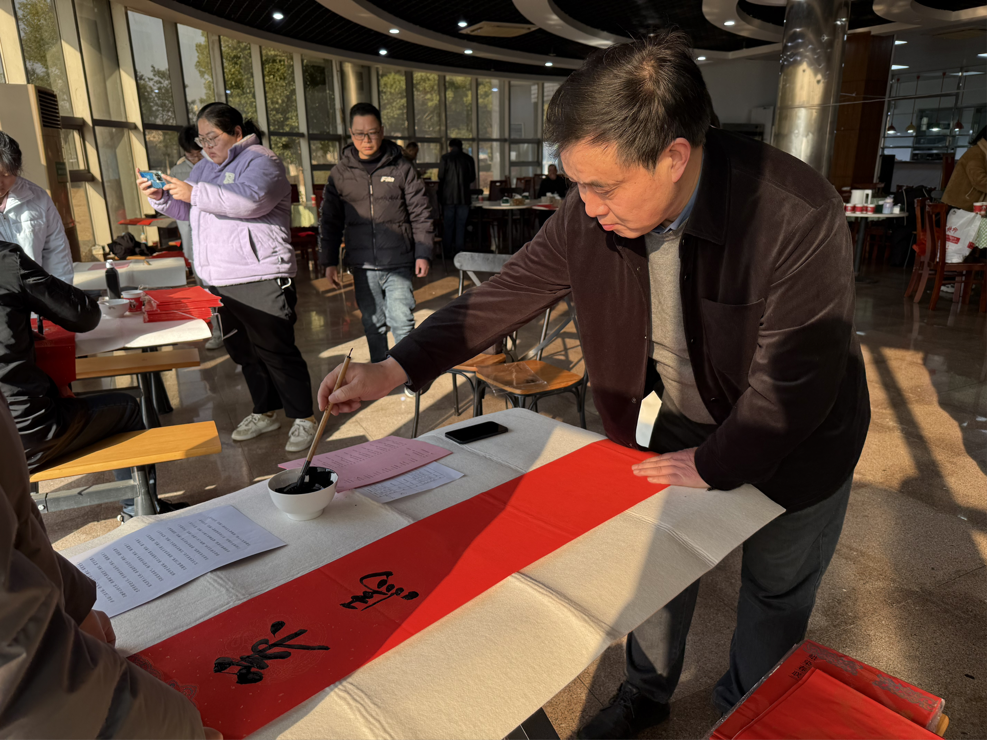 据统计,活动现场共书写传统与现代结合的春联300余副、“福”字200多个。此次“送万福 进万家”书法公益活动是安庆市总工会工人文化宫“春节”系列文化活动的重要组成部分。下一步,市总将持续深化“送万福 进万家”活动品牌效应,推动书法公益活动向企业车间、建设工地、社区一线、新就业形态劳动者群体延伸,通过定制化、常态化的文化服务,把党和政府的关怀与新春祝福送到更多职工群众心坎上,在营造欢乐祥和节日氛围的同时,凝聚起建功新时代的精神力量。