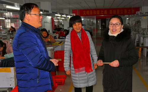 3月7日上午,潜山县总工会党组书记、常委副主席葛国柱一行来到安徽甬安雨具有限公司、安庆永大体育用品有限公司、安徽禾茂中意服饰有限公司以及安徽米兰电子科技有限公司慰问一线女职工,共发放放慰问品和慰问金19000元,为女职工们送去节日的温暖和祝福。