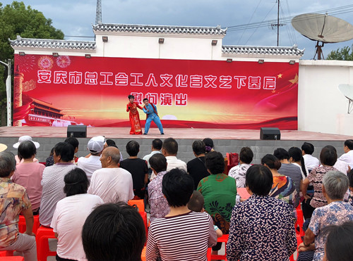 9月19日,安庆市工人文化宫艺术团“送文化下基层慰问演出系列活动”新一站,来到了安庆市皖河农场,场领导出席活动并全程观看了演出,机关、社区各部门,下属各单位工会主席、辖区职工群众近300人现场观看了文艺演出。