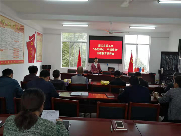 为扎实开展“不忘初心、牢记使命”主题教育,激发党员干部和年轻同志的工作热情,10月13日,望江县总工会召开“不忘初心、牢记使命”主题演讲会,县总全体干部职工、社会化工作者、退休老干部参加。