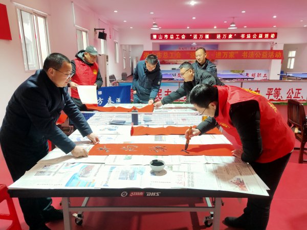 岁末年初,佳节将至。为大力弘扬中华优秀传统文化,丰富广大职工群众精神文化生活,营造欢乐、喜庆、祥和、安康的节日文化氛围,1月25日,潜山市总工会开展了“送万福、进万家”书法公益活动,现场书写春联、送福字,将节日祝福和浓浓年味带到职工群众身边。