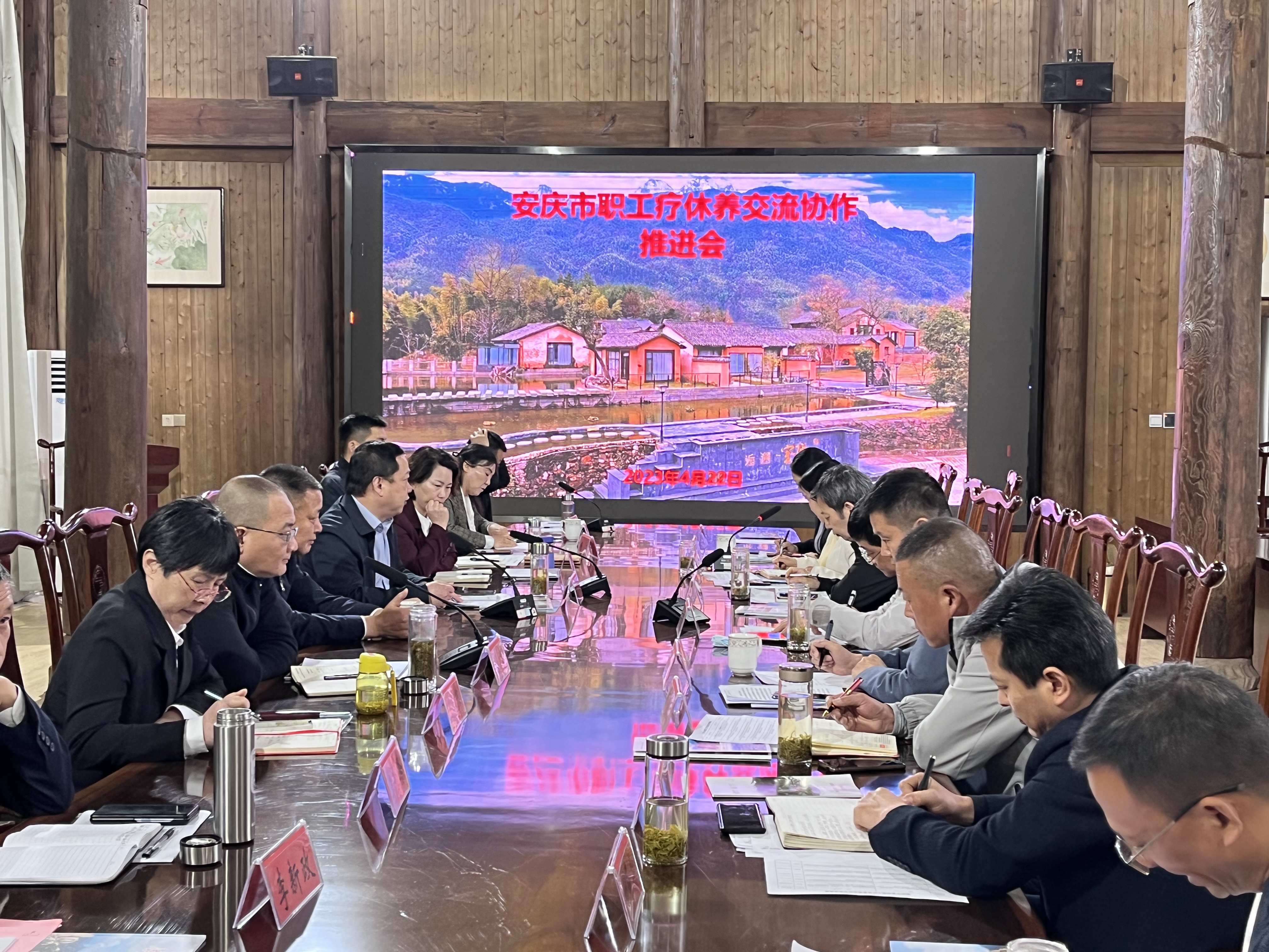 潜山市总工会在会上进行了交流发言。一是积极创建职工疗休养基地。去年以来,潜山市大力培育省、市级职工疗休养基地,全力打造具有潜山特色的职工疗休养品牌,天柱山康养基地、卧龙山庄先后获得“安徽省职工疗休养基地”称号,卧龙山庄、江徽农庄两家单位入选首批“安庆市职工疗休养基地”,命名天柱山陌上民宿、天柱山道乐民宿、潘铺农庄、槎水慢庄、黄铺庄园为首批“潜山市职工疗休养基地”。二是助力本地文旅消费。去年,潜山市总工会、潜山市文旅体局、潜山市商务局、潜山市财政局联合发文《在全市开展“潜山人游潜山”活动》,鼓励在市内开展职工“疗休养”、组织职工“市内游”以及通过购买文旅消费年票的方式助力本地文旅消费。三是开展职工疗休养交流学习和推介。去年12月份,浙江桐庐县总工会到潜山开展职工疗休养工作交流和相互推介,签订合作意向书。浙江的职工疗休养工作走在全国前列,他们的管理经验和先进做法值得我们学习借鉴,今年3月份,潜山市总工会组团到浙江淳安县、桐庐县、德清县调研职工疗休养工作,全国劳动模范余晓八、天柱山康养基地和卧龙山庄两家省级职工疗休养基地负责人参加调研,潜山市总工会与浙江三县工会均签订了职工疗休养合作意向书,明确了互认疗休养基地、共享优惠条件、互送职工开展疗休养活动等事项。四是召开职工疗休养征求意见座谈会。潜山市总工会召集各基层工会主席对职工疗休养工作提出要求,将根据会议讨论意见形成会议纪要下发,要求各基层工会严格按照事前报备、事后报告的要求开展职工疗休养工作。