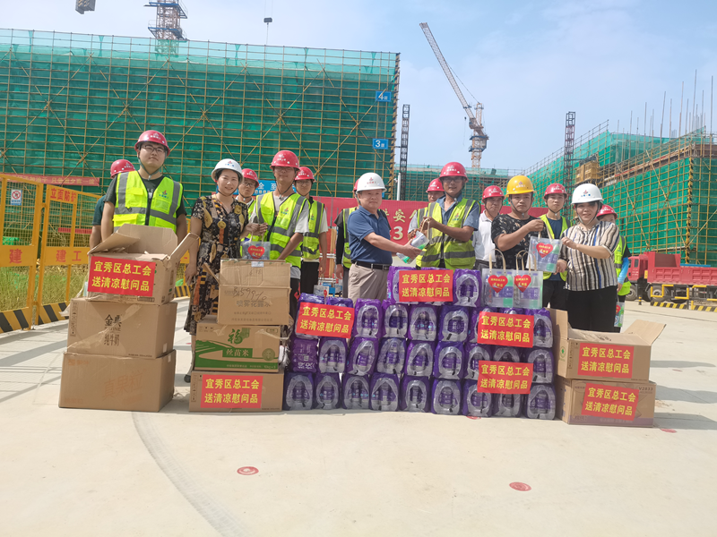 宜秀区委书记郑志率队来到江宸项目工地,向一线建筑工人代表们赠送清凉包、矿泉水。郑志强调要把安全生产牢牢抓在手上,健全安全生产责任制,进一步做好高温天气下安全生产和防暑降温工作,确保劳动者身体健康和生命安全。