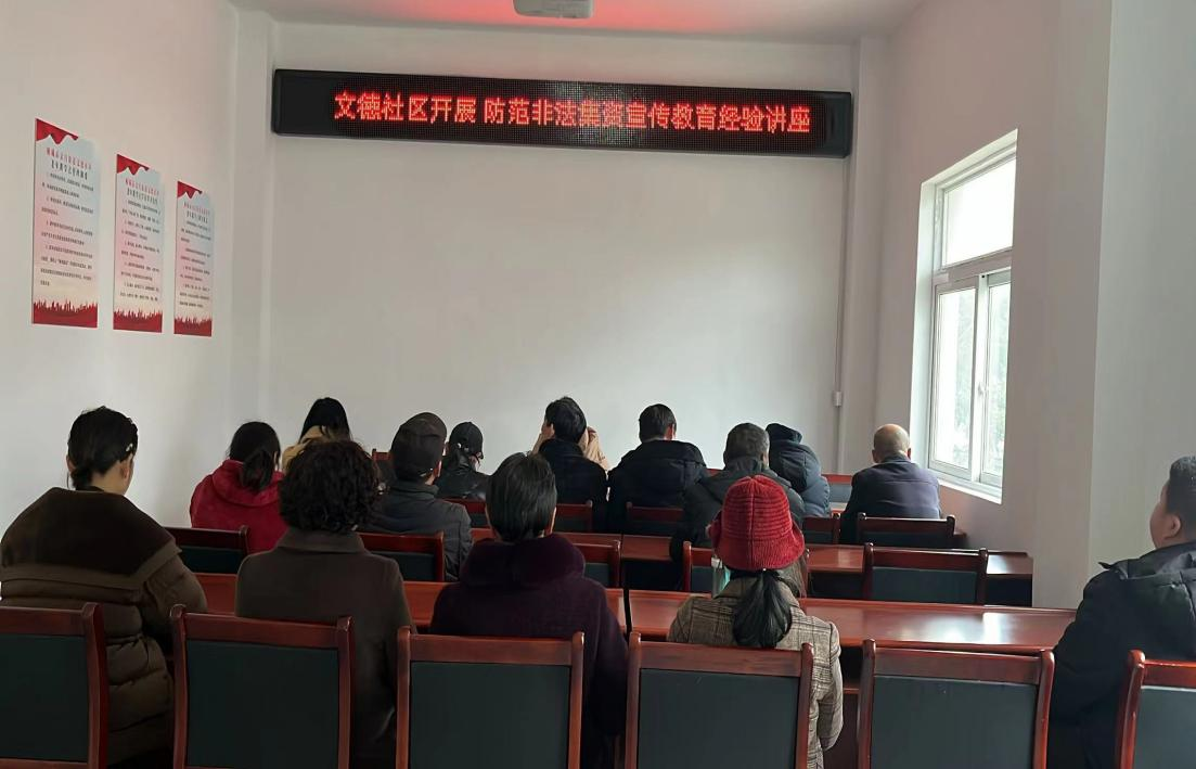 为深入贯彻《防范和处置非法集资条例》,进一步提升非法集资宣传教育的系统性、持续性和有效性,确保元旦、春节期间社会大局和谐稳定,文昌街道文德社区工会2月20号集中开展防范非法集资宣传活动。活动现场,社区工作人员通过发放宣传资料、讲解等方式,向过往群众普及防范和打击非法集资知识,注重对老人、进城务工人员、群众、小商户等重点人群和对象进行宣传,突出对防范“一非三贷”领域风险的宣传教育。同时,突出警示普法教育,提升民众知法、守法防范意识。